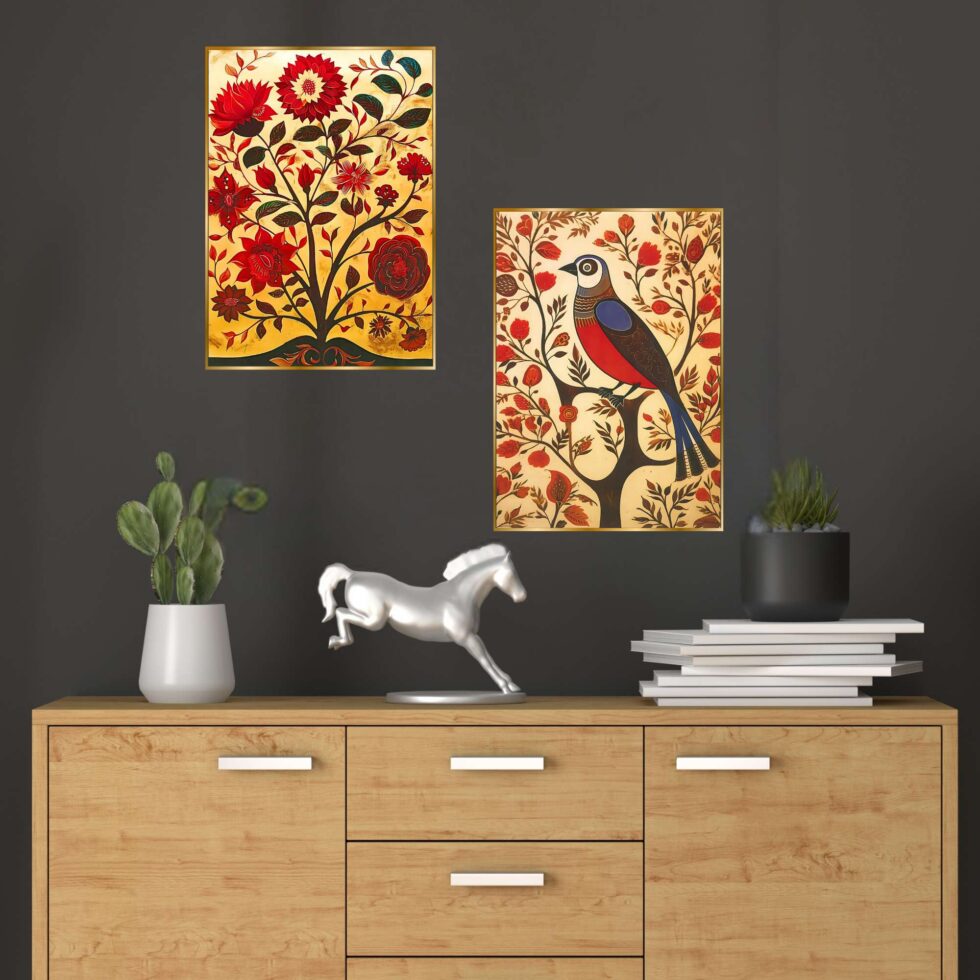 wall paintings, designed to elevate any room with their vibrant traditional charm. Perfect for a variety of settings, these intricate pieces are ideal for wall decor, whether you’re seeking artwork for your living room or bedroom. Our collection includes bold and large wall paintings that create a striking focal point, especially as big wall paintings for the living room. paintings are perfect for home decoration, seamlessly fitting into any space as wall art for living rooms or framed wall paintings for bedrooms. Whether you choose wall paintings with frames for the living room or bedroom, these pieces add an elegant, cohesive touch to your decor. Beyond living areas, these paintings also make beautiful kitchen wall decor and versatile wall hanging options. Enhance your living room wall decor with framed wall art that complements any style. Choose from various formats, including wall paintings golden frame,allowing you to customize your space with ease. Each painting blends traditional and abstract styles, offering both framed wall paintings and wall art decor that fit effortlessly into any room. Explore the beauty of art and bring a touch of culture and sophistication to your home with these exquisite wall paintings for decoration.